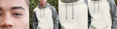 - Raw-edge seams around hood opening, pocket seams, cuffs, waistband and side seams