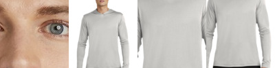 3.5 oz./yd2 / 130 gsm, 100% polyester interlock with moisture-wicking and uv pro; Team fit; Attached hood; Cationic dyes for superior brightness and excellent colorfastness; Transitioning from heat-seal label to tear away label. Inventory may be mixed;