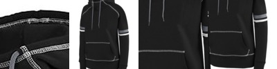 9 ounce 60% cotton/40% polyester athletic fleece ; Jersey-lined hood; Set-in sleeves ; Front pouch pocket ; Rib-knit cuffs and bottom band; No drawcords;