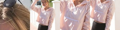 - Self-mock collar, cuffs, and bottom hem