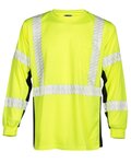 4.5 oz., 30 singles; Solid: 30% Ring Spun Cotton, 60% Recycled Polyester, 10% Rayon, 30 Singles; Light Steel: 90% Cotton, 10% Polyester, 20 Singles; All cotton content is 100% U.S. Grown; Safety Green is ANSI/ISEA 107-2020 certified as background material for high visibility safety apparel; 50-20 UPF rating, good protection; X-Temp adaptive finish and fresh IQ advanced odor protection technology; Shoulder-to-shoulder neck taping; Oversized pencil stitch pocket; Extra length in body and sleeves for coverage; Reinforced armhole stitching for durability; Lay-flat collar for shape retention and durability; Tear-away label; "A-" list status from CDP (Carbon Disclosure Project); Energy Star Partner of the Year (14 consecutive years); Every piece of Hanes apparel purchased from our company qualifies for Hanes4Education;