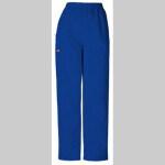 This elastic waist utility pant features a natural rise and tapered leg, two cargo pockets, a cell phone pocket and an outside scissor pocket. Inseam 30". Fabric: 65 Poly/35 Cotton Poplin w/ Soil Release
