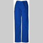 A casual Unisex pant features a natural rise and an adjustable webbed drawstring at the waist, one back pocket, and a cargo pocket with an inside cell phone pocket. Inseam 31". Fabric: 65 Poly/35 Cotton Poplin w/ Soil Release