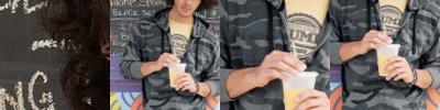 • Self-fabric, split front pouch pocket