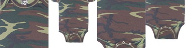 5.3 oz. 100% combed ringspun cotton print 1x1 baby rib; Flatlock seams; Double-needle ribbed binding on neck and shoulders; Reinforced three snap closure; Bleed resistant ink is recommended when printing ; Double-needle ribbed binding on sleeves and leg opening;